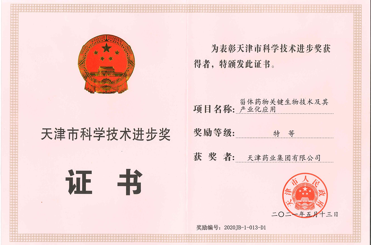 It has obtained a number ofqualifications and honors, including the first batch of national enterprisetechnology centers, municipal enterprise technology center twice, includingTianjin Key Laboratory of Micropowder for Inhalation, Tianjin Key Laboratory ofPharmaceutical Process Control and Green Technology Enterprise, enterprise keylaboratory for three times, and national intellectual property demonstrationenterprise for one time, etc.. It has won the second prize of nationalscientific and technological progress twice, its project "KeyBiotechnology of Steroid Drugs and Its Industrial Application" won thespecial prize of Tianjin Scientific and Technological Progress, and its processsafety and control laboratory obtained CNAS certification.